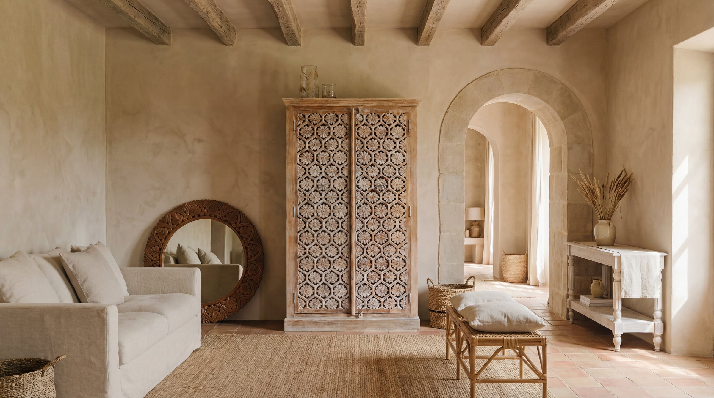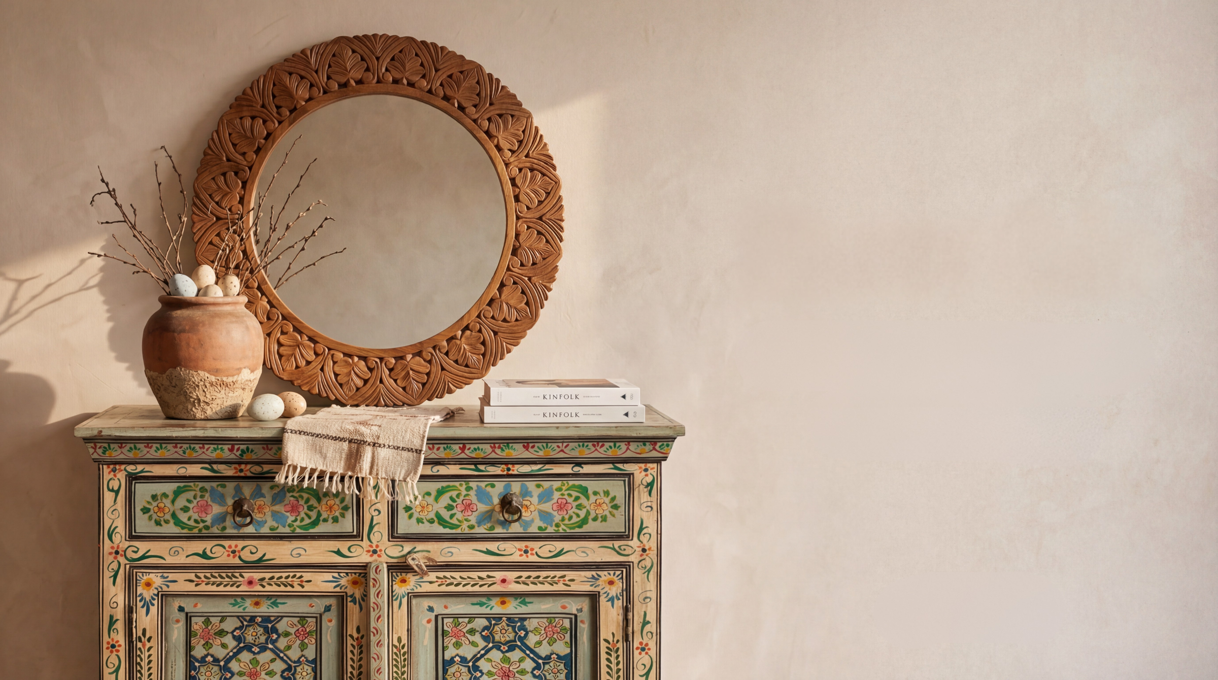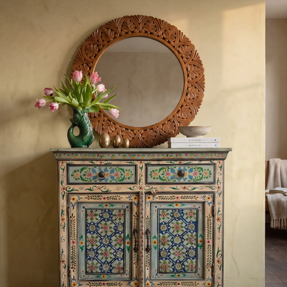 At Kirei Home, every piece is created with intention — not simply to serve a function, but to tell a story. Our furniture reflects a commitment to quality, sustainability, and timeless craftsmanship. Shaped using traditional techniques passed down through generations, each item — from intricately hand-carved mango wood cabinets to delicately painted sideboards — is made to last in both beauty and strength.