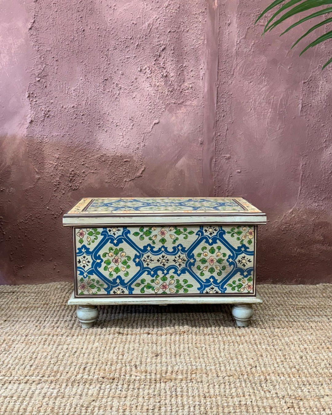 6. Hand-Painted Mango Wood Storage Box – Floral & Geometric Design
