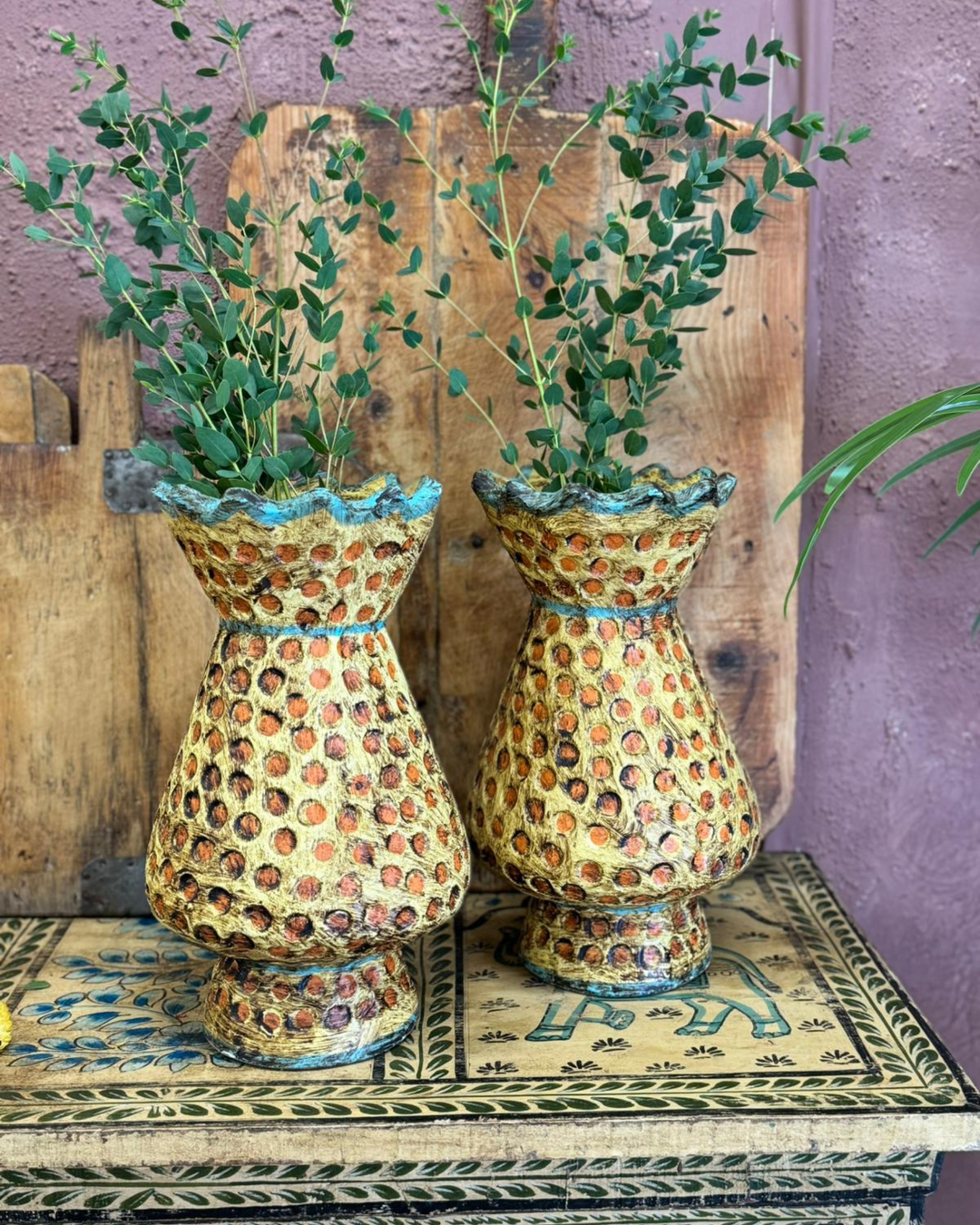 4. Handcrafted Indian Paper Mâché Vase Set – Set of 2