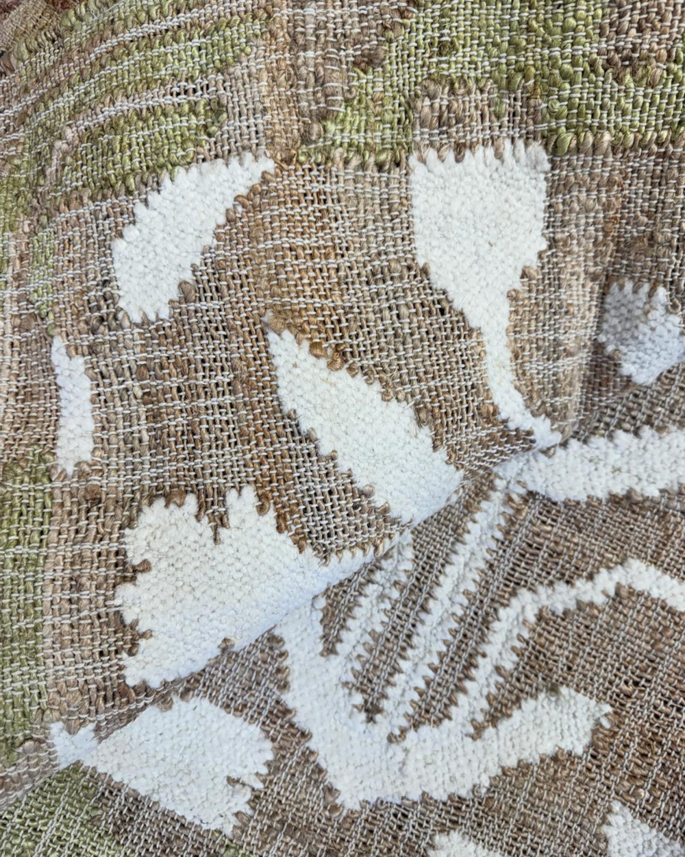 Jute & Hand-Carded Wool Handwoven Rug – Natural with Soft Green Border (120 x 180cm)