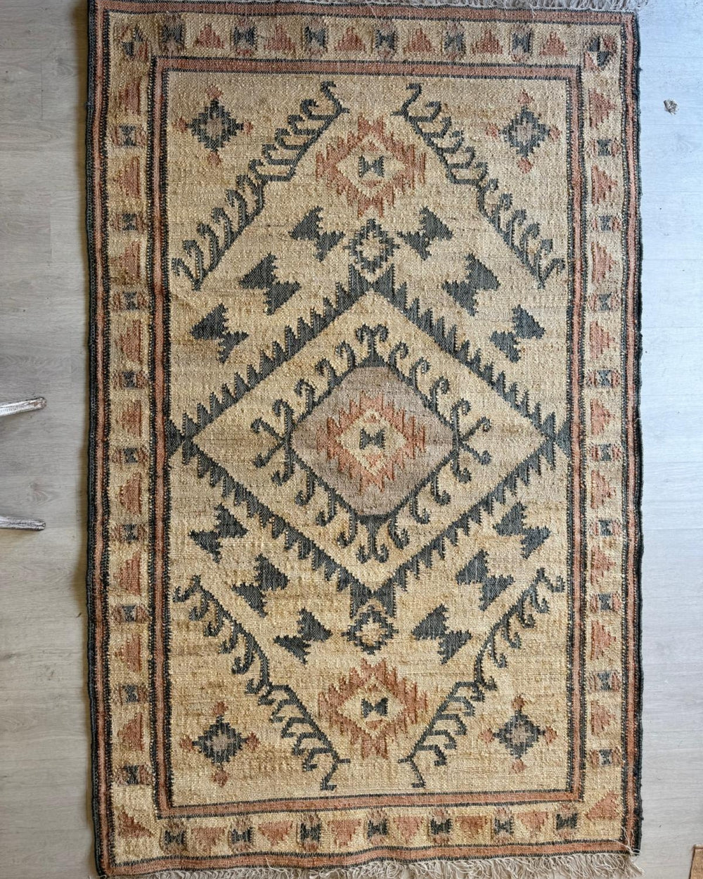 Jute & Hand-Carded Wool Handwoven Rug – Natural Geometric Pattern (120 x 180cm)