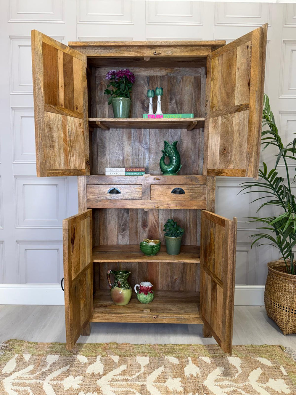 Two Door Two Drawer Mango Wood Wardrobe – Light Natural Finish