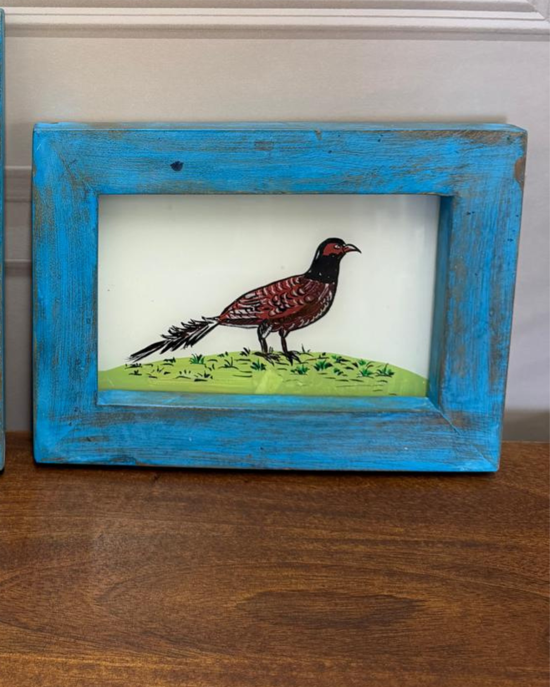 Hand-Painted Pheasant Oil Painting – Reclaimed Mango Wood Frame (37 x 45 cm)