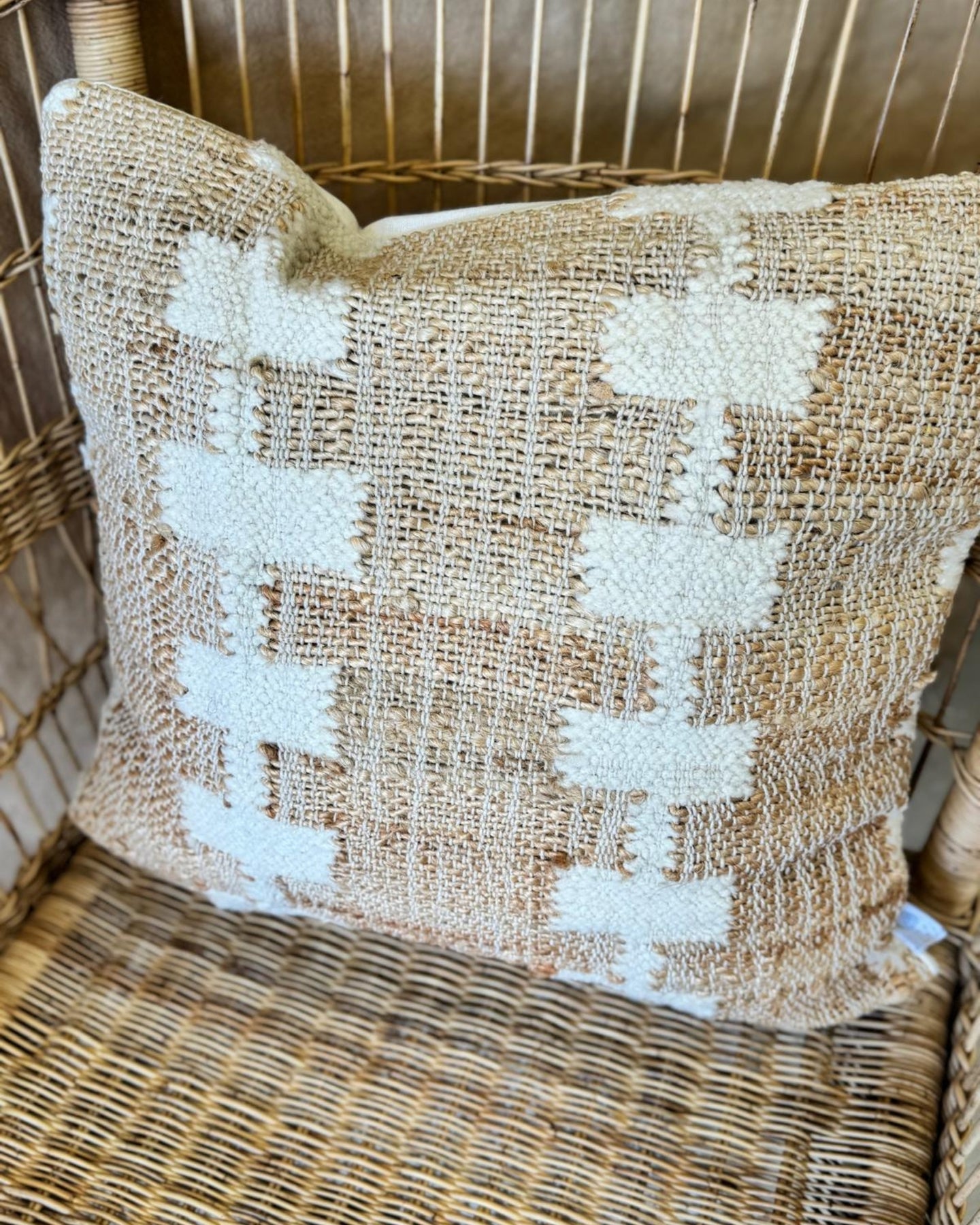 The natural beige and cream palette adds an earthy elegance, making it a versatile choice for any interior style – from bohemian to contemporary minimalism. Each piece is hand-woven on traditional looms, ensuring that no two cushions are ever exactly the same.