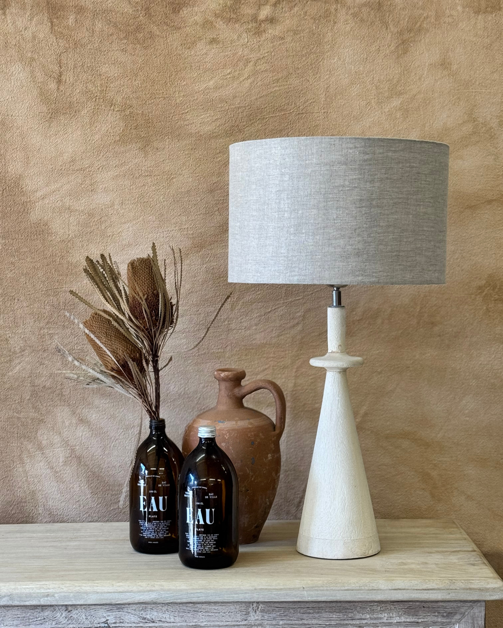 Shaped from sustainably sourced mango wood and finished in a gentle whitewash, this beautifully crafted table lamp brings effortless elegance to any space. Its slender, conical base is both sculptural and understated, offering a modern take on timeless design.