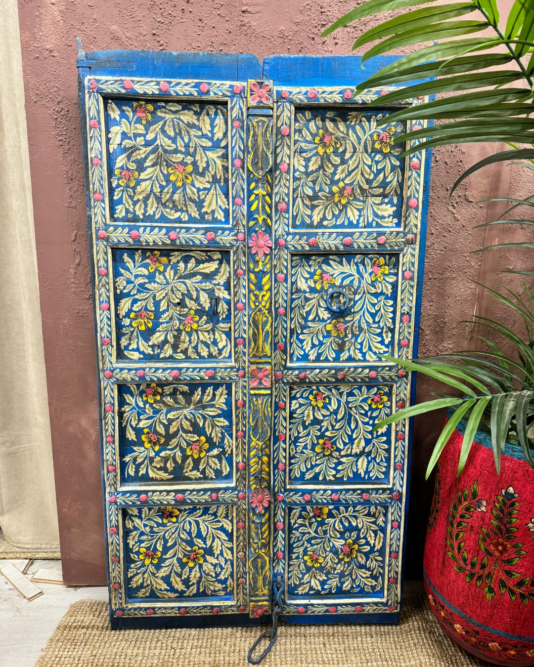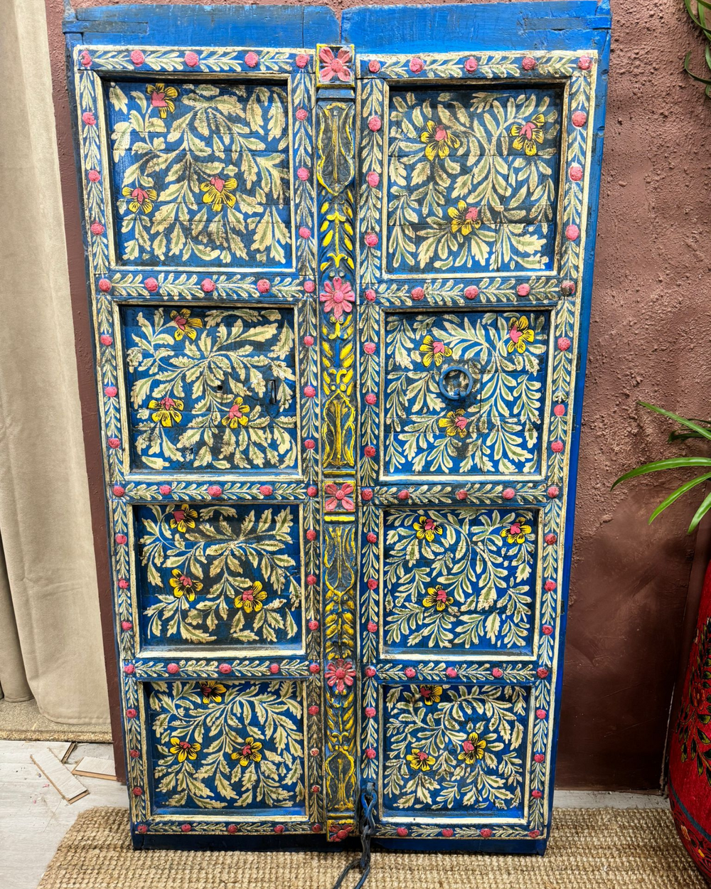 Reclaimed Vintage Hand-Painted Indian Wooden Door – Intricate Floral Artistry