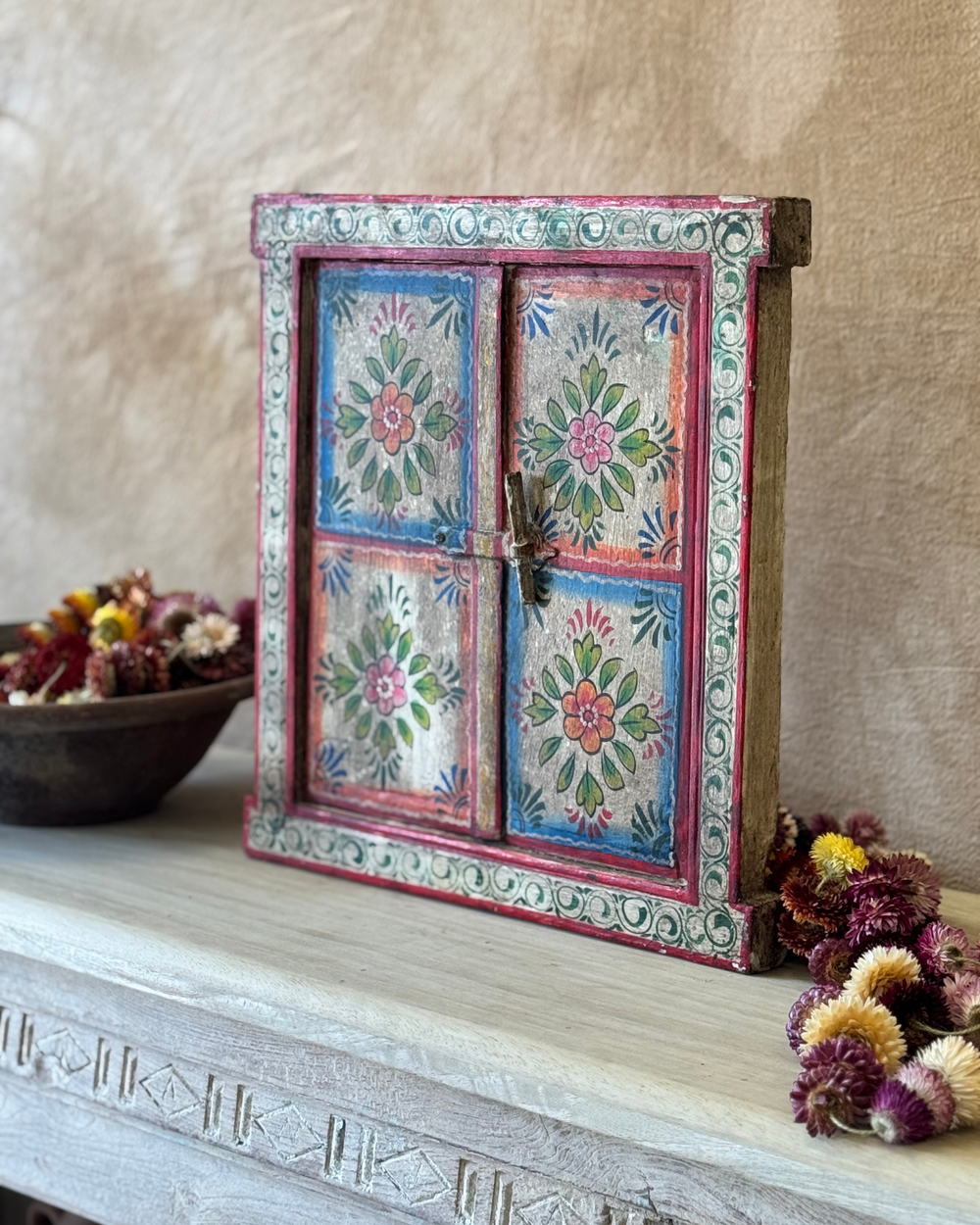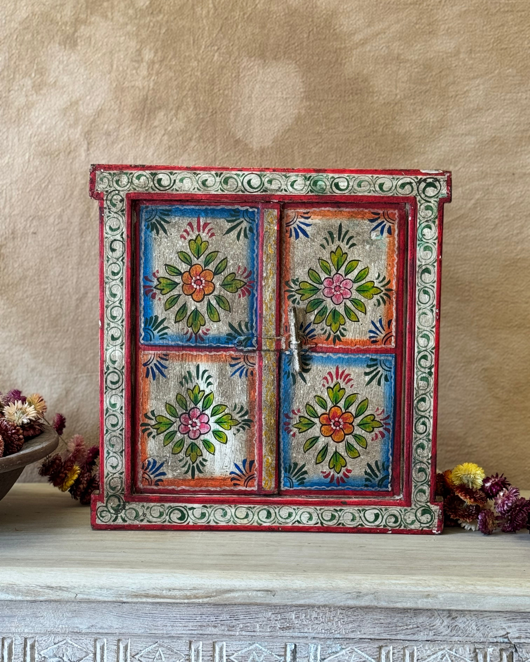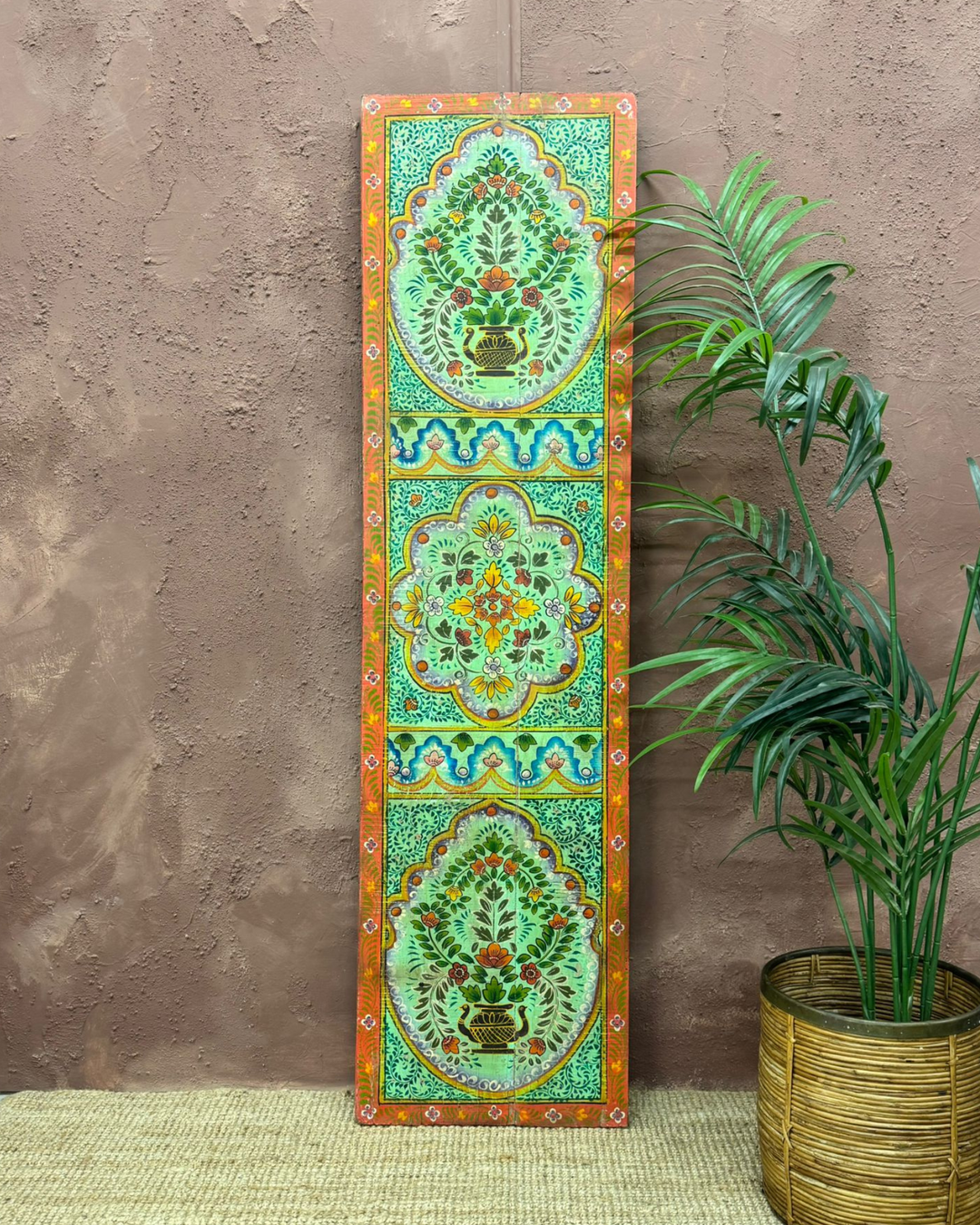 Vintage Hand-Painted Mango Wood Wall Panel – Floral Design, Red & Green Finish