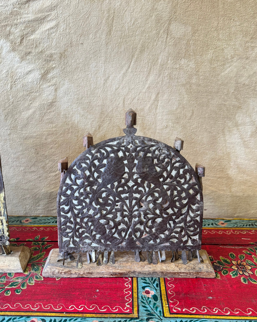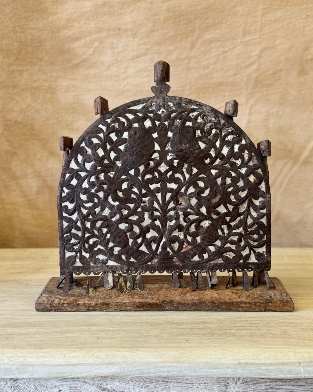 Vintage Decorative Panel – Recycled Wood & Iron with Hand-Carved Bird Motif