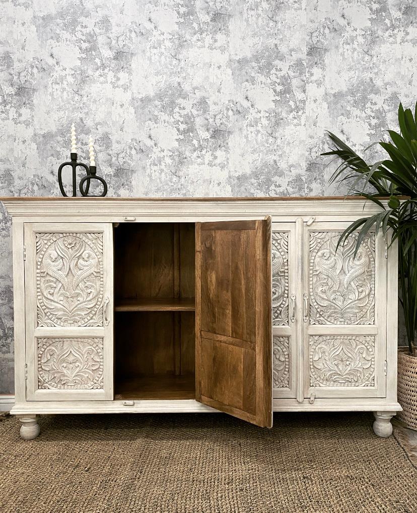 Four door carved sideboard whitewashed