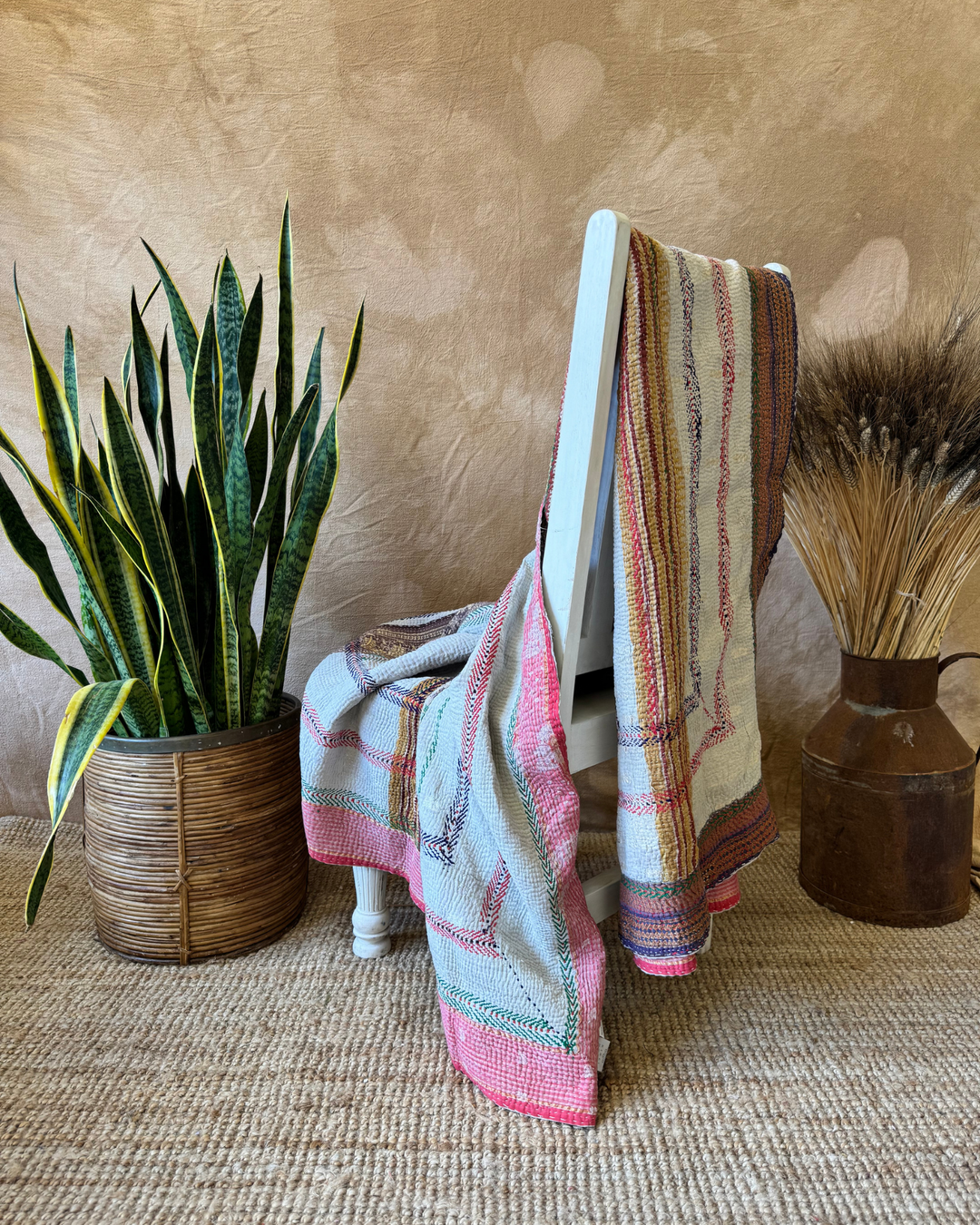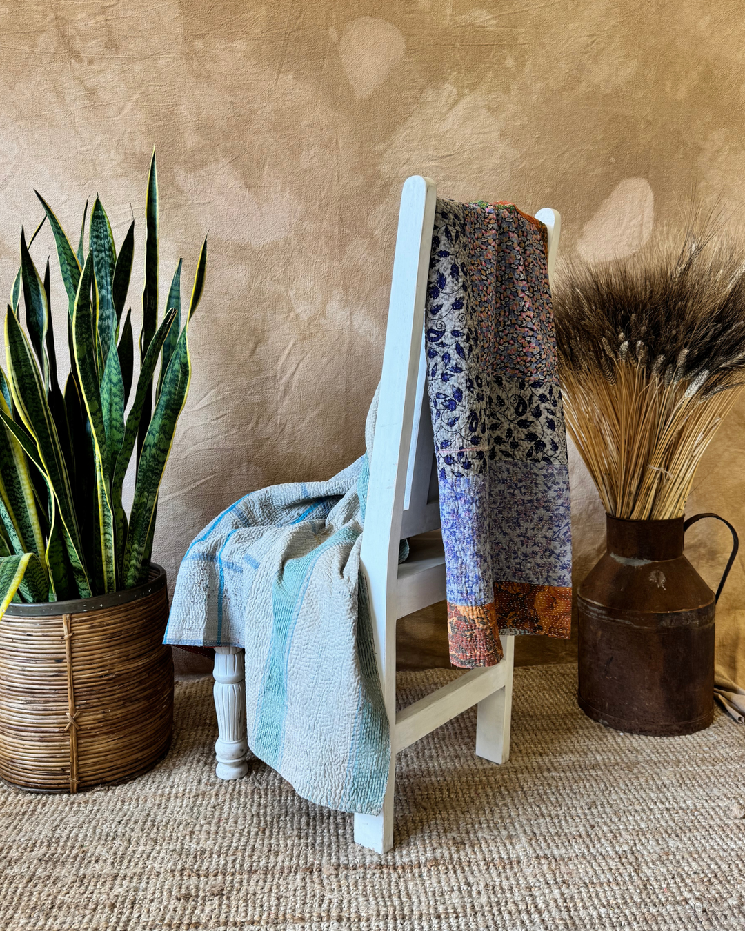 Discover the soulful artistry and timeless elegance of our Vintage Hand-Embroidered Kantha Throws, each lovingly crafted from repurposed sari textiles. Every throw in this collection is a true one-of-a-kind, hand-stitched by skilled artisans using the centuries-old Kantha embroidery technique – a beautiful fusion of sustainability, heritage, and craftsmanship.