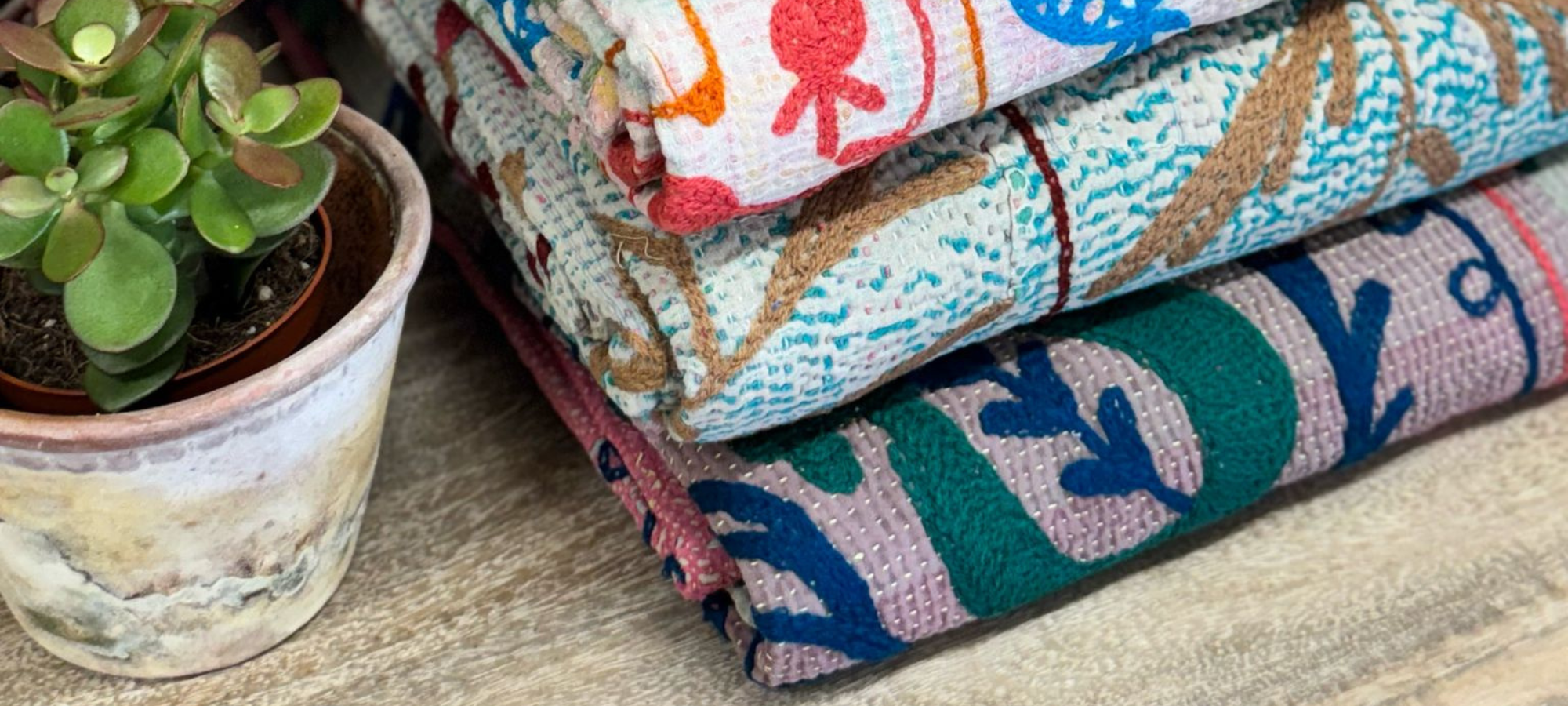 This collection honours the artistry of hand embroidery across generations, blending sustainability with timeless style. Whether you're styling your home or finding the perfect artisan gift, each piece adds warmth, texture and soul.