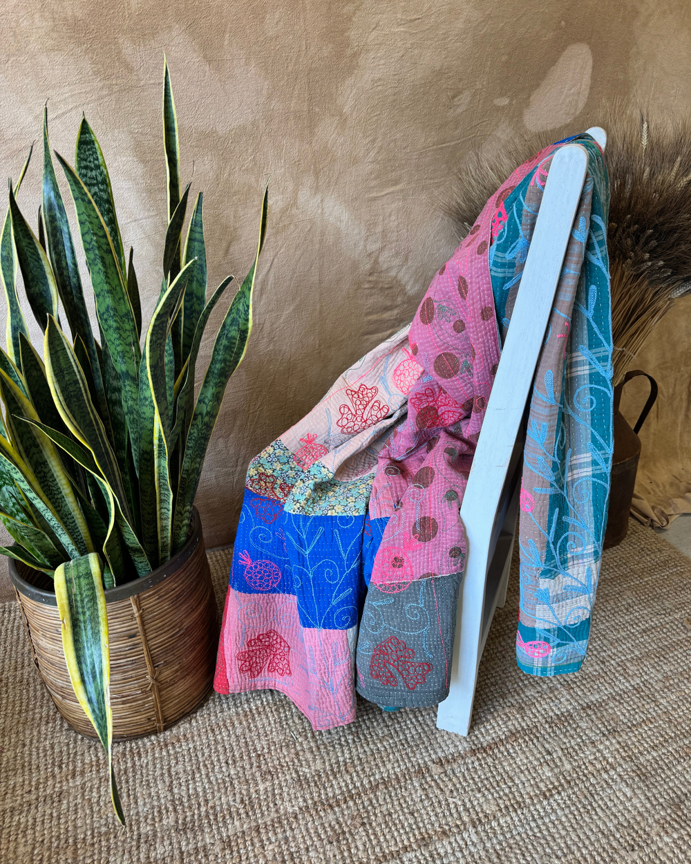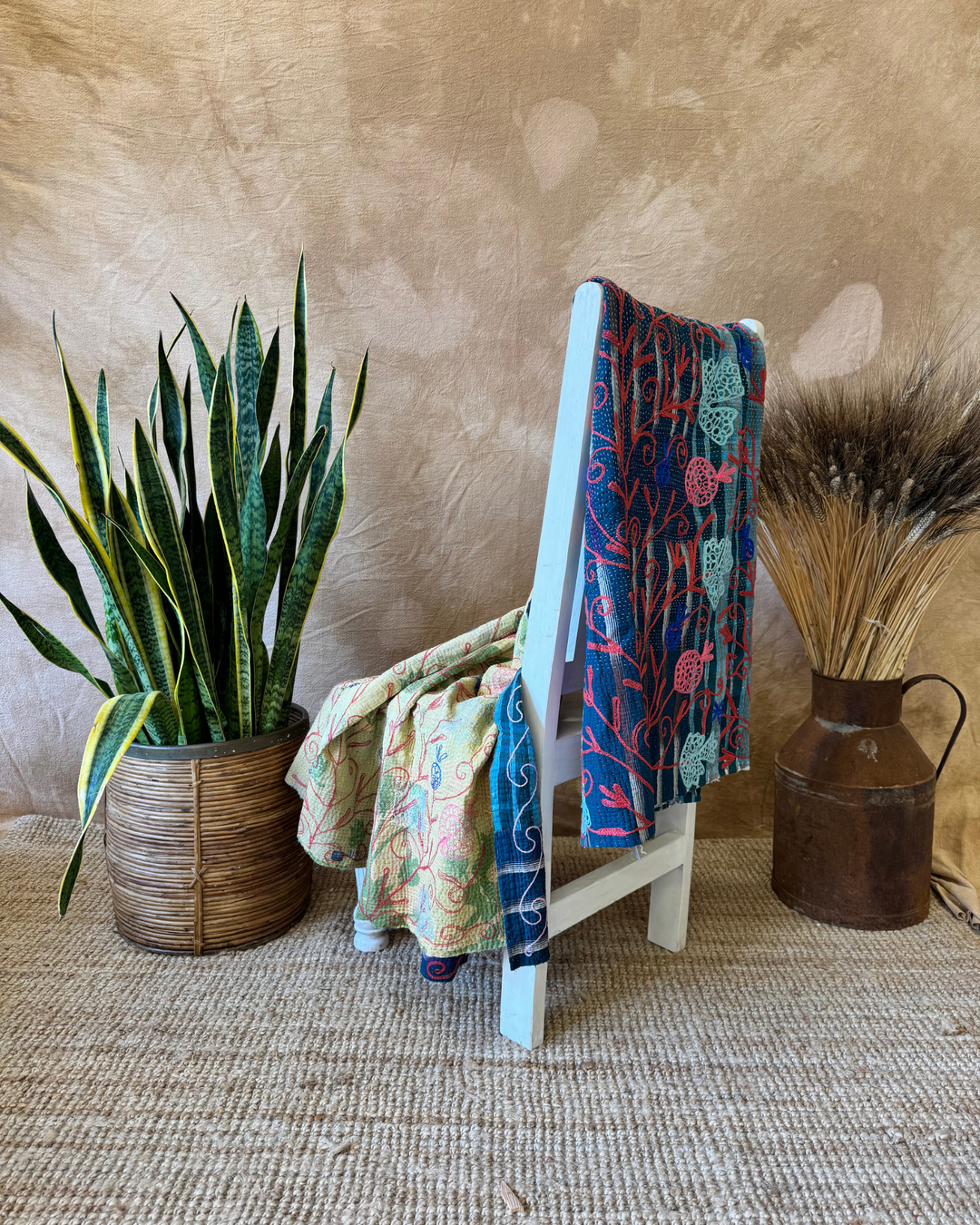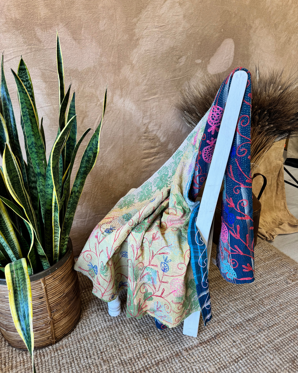 A celebration of heritage craft and conscious design, our Hand Embroidered Textiles collection brings together beautifully made pieces rich in detail and story. From Kantha-stitched tote bags to vintage-inspired scatter cushions, each item is thoughtfully handmade using traditional techniques and upcycled fabrics.