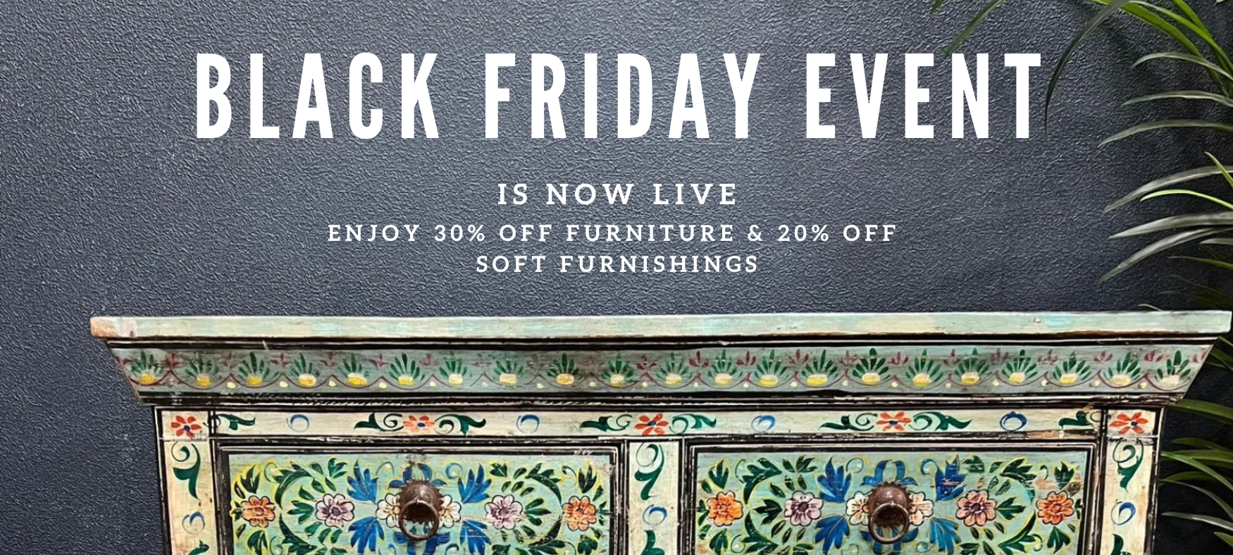 Our Black Friday Event is now live — enjoy 30% off all furniture and 20% off soft furnishings, home décor and gifts.