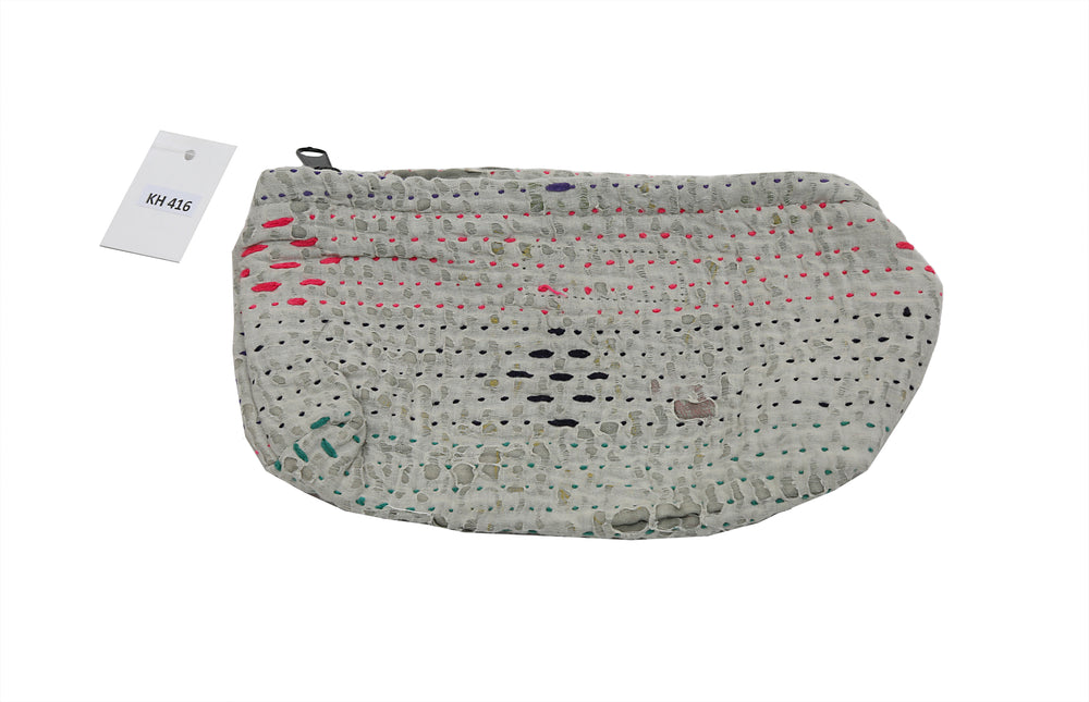 Lovingly crafted using reclaimed vintage sari fabric, this small wash bag is a celebration of heritage textile art. Each piece is completely unique, hand-embroidered with care and finished with a secure zip closure. At Kirei Home, we believe in timeless beauty rooted in sustainability — and these one-of-a-kind bags embody that philosophy. Their compact shape makes them ideal for storing toiletries, cosmetics or travel essentials, while their vibrant character adds a joyful charm to everyday rituals. A meaningful gift or a delightful treat for yourself.