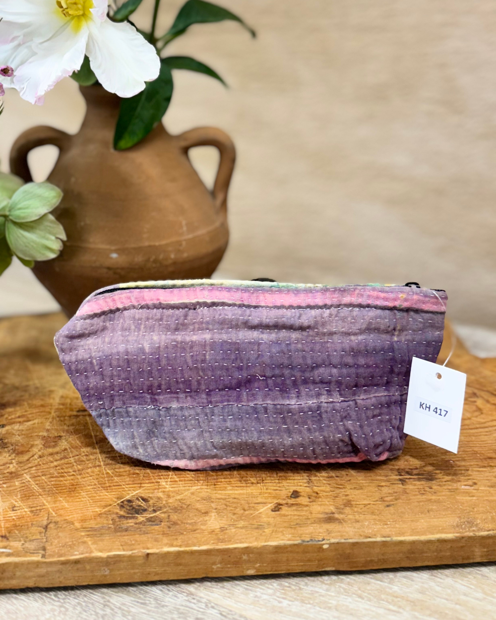 Lovingly crafted using reclaimed vintage sari fabric, this small wash bag is a celebration of heritage textile art. Each piece is completely unique, hand-embroidered with care and finished with a secure zip closure. At Kirei Home, we believe in timeless beauty rooted in sustainability — and these one-of-a-kind bags embody that philosophy. Their compact shape makes them ideal for storing toiletries, cosmetics or travel essentials, while their vibrant character adds a joyful charm to everyday rituals. A meaningful gift or a delightful treat for yourself.